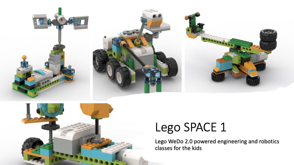 Build and explore a simple satellite model using LEGO WeDo 2.0. | - Space vocabulary: What is sattelites, types, what they are doing